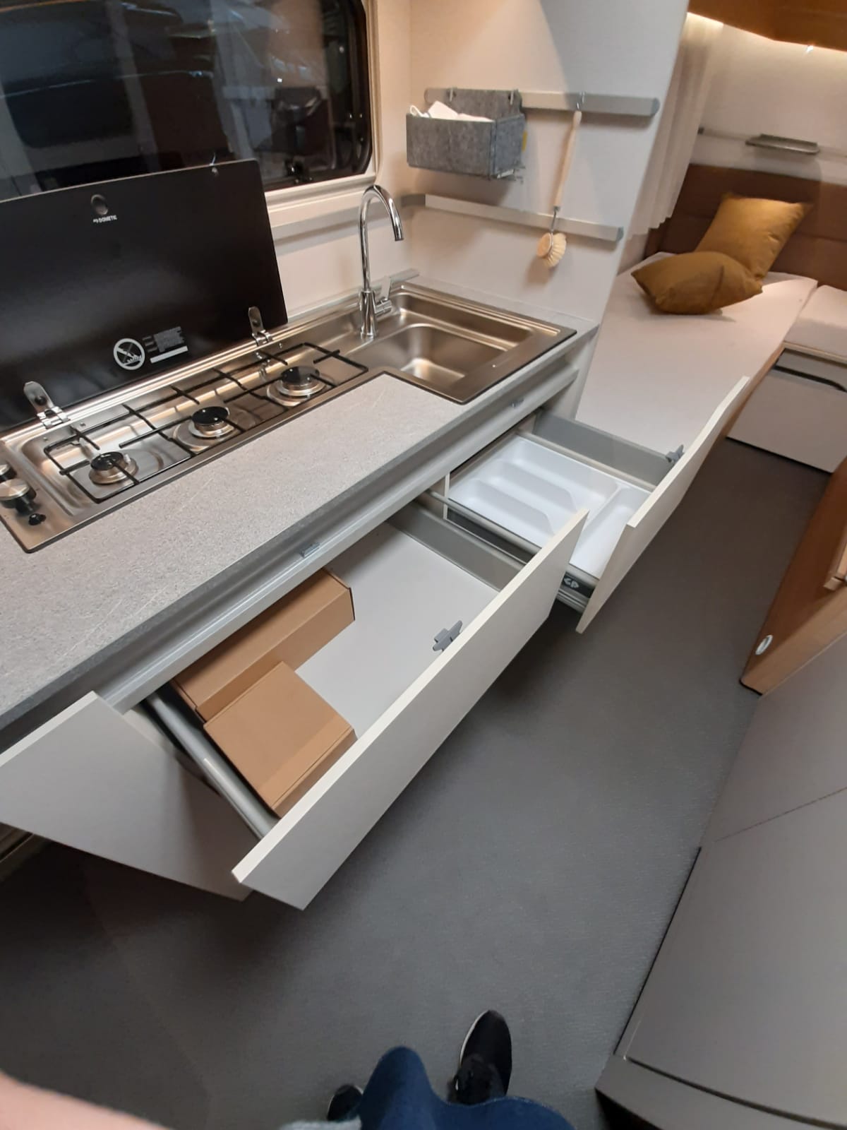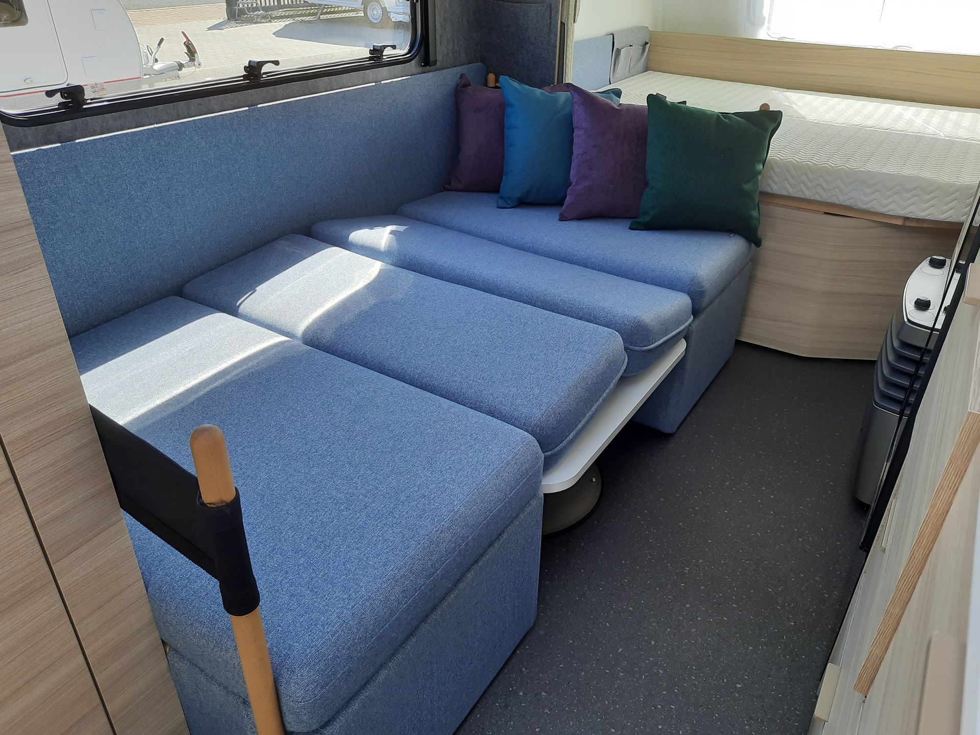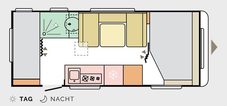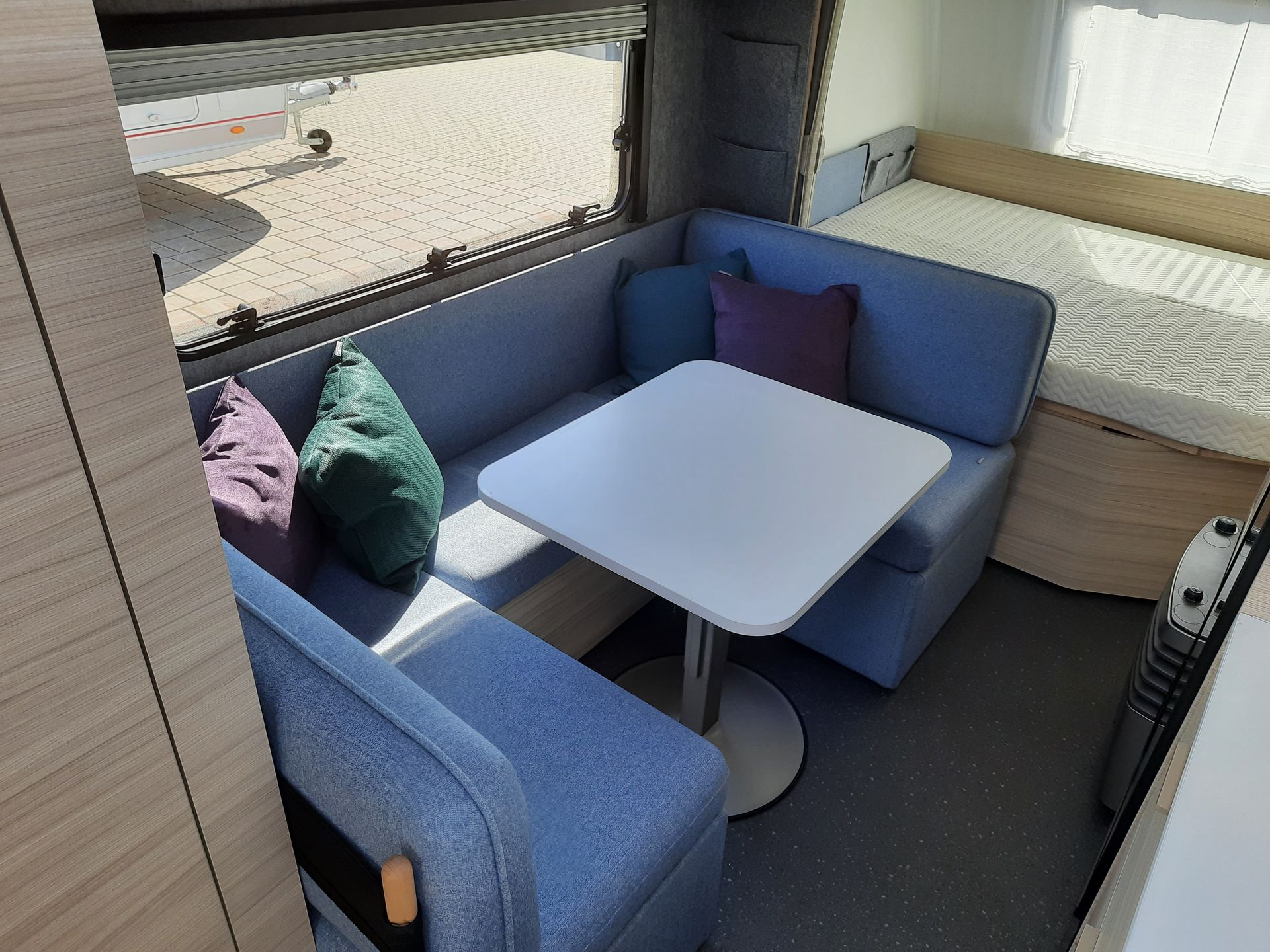 Der Wohnwagen bietet viel Komfort, im bewerten Grundriss.
