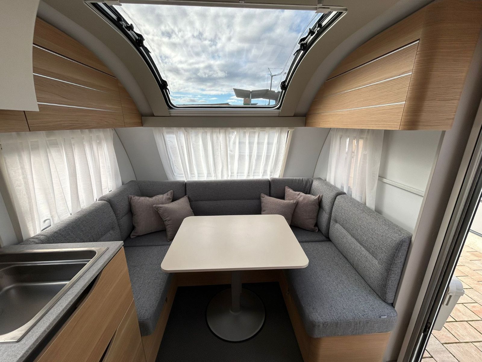 Der Altea 542 von Adria bietet mehr als genügend Platz für Ihre ganze Familie. Was diesen Wohnwagen so besonders macht, ist sein Gewicht und sind die vielen Betten, die Trotz des begrenzten Platzes sehr komfortabel und geräumig ausfallen.